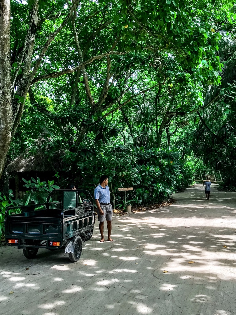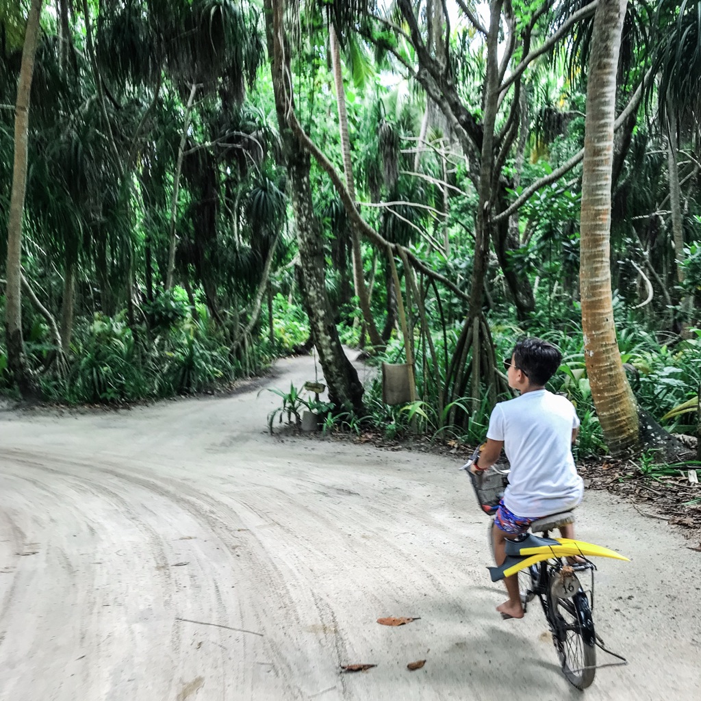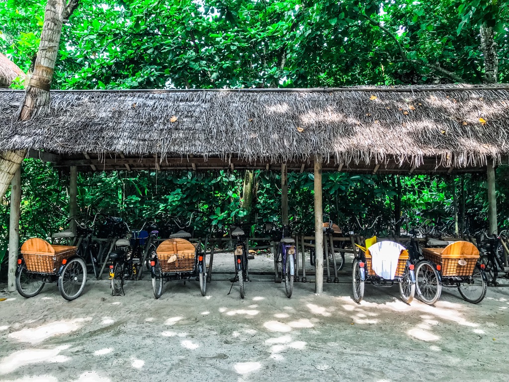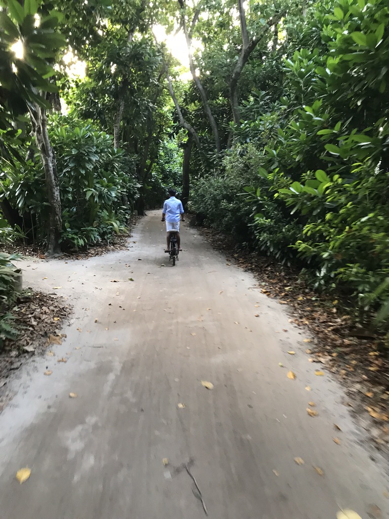 The approach to the bicycle at Soneva Fushi perfectly reflects its Weltanschauung. Everyone gets a bike. Payor and payee. If you don’t know how to ride on two wheels or wish to haul a child you can get a cargo trike.