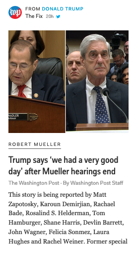 It doesn’t matter that “Mueller’s report is a damning document of crimes by Trump“, what matters is that Mueller, qua gladius, is a “frail old man, unable to remember things, stumbling, refusing to answer basic questions“. He didn’t please the crowd with his gladiatorial performance….because that’s still how we make decisions.