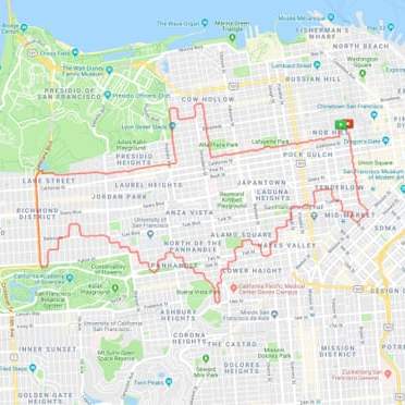 The physical path he takes through the city mimics the digital paths that Strava renders atop the 2D digital map of that city.