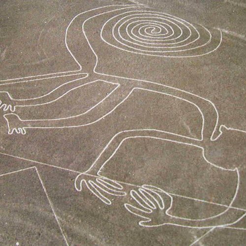 The ancient Peruvian geoglyphs that always show up in those “Ancient Mysteries” television programs are no longer so mysterious thanks to Simon Beck. If a human brain can cause the feet to which it is wired to produce these complex patterns, then the simple line drawings of the Nazca people don’t require Alien assistance.
