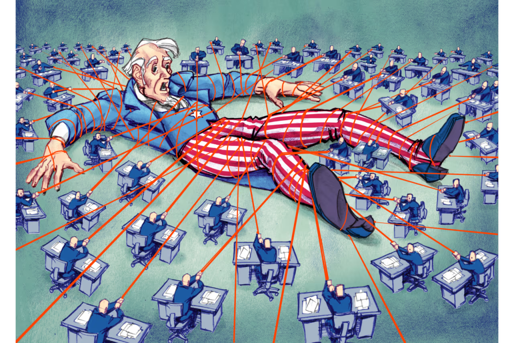 The postwar American state was structured around an expanding bureaucratic and security apparatus that safeguarded economic stability, strategic hegemony, and social order. From the 1940s to the early 2000s, institutional growth coincided with the expansion of the middle class and the maintenance of a delicate equilibrium between economic elites and the general populace.
