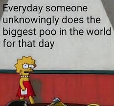 Every day someone unknowingly does the biggest poo in the world for that day.